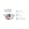 O fundo triplo distribui uniformemente o calor, não sendo necessário o fogo alto. E, além disso, você economiza energia.