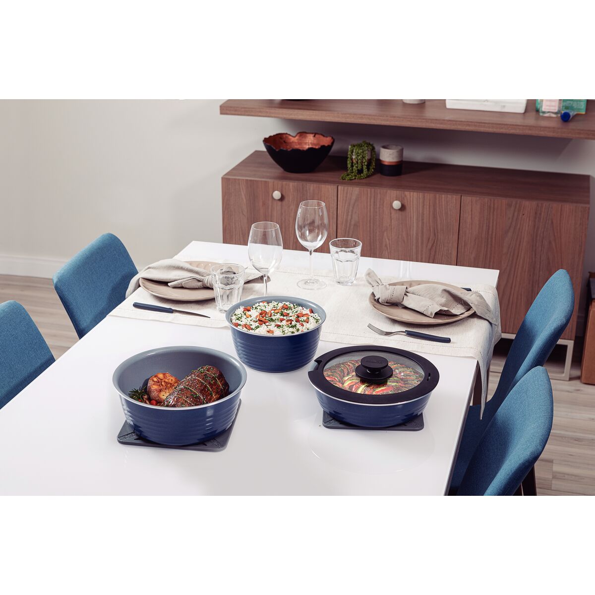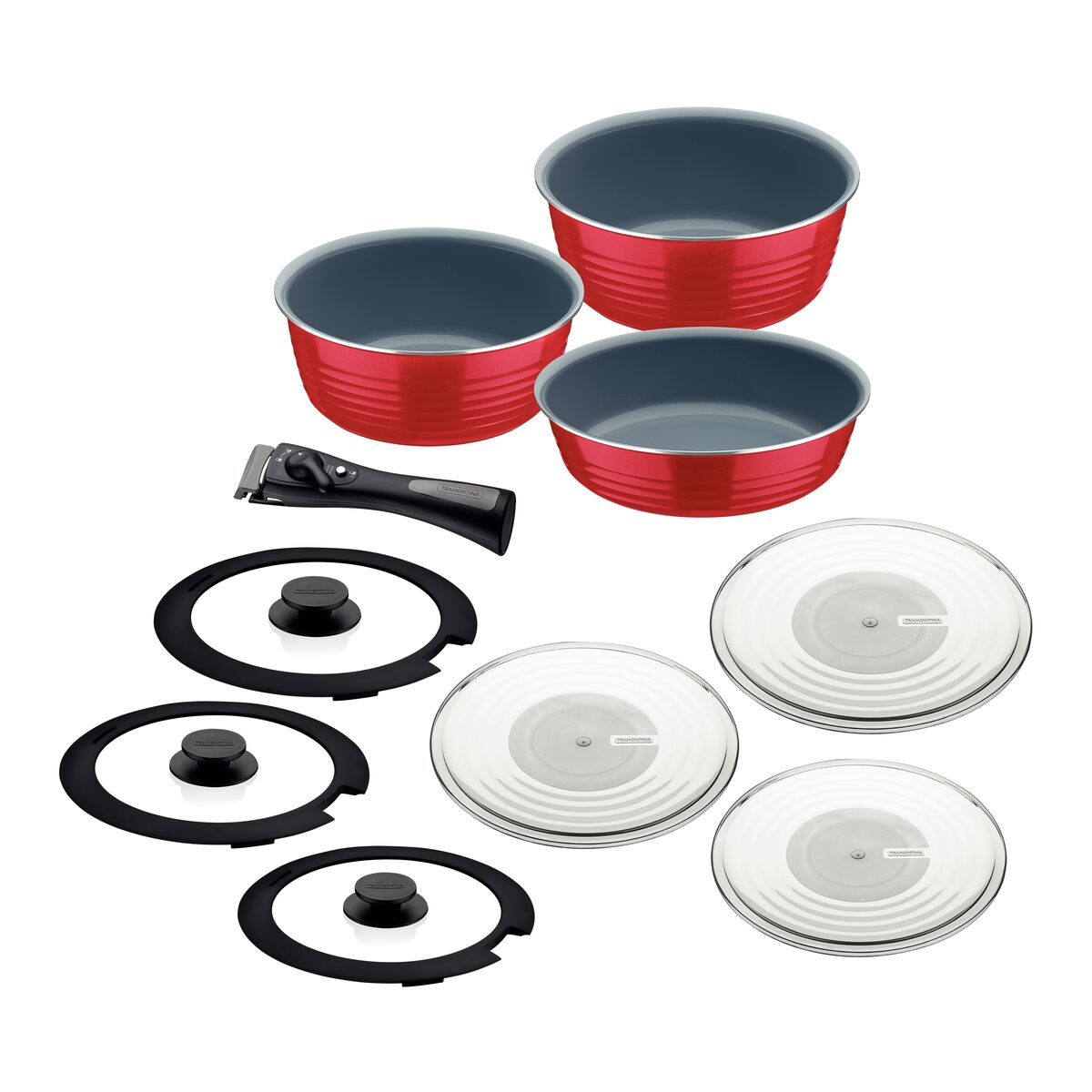 Jogo de Panelas Multiuso Tramontina Itria em Alumínio com Revestimento Cerâmico e Cabo Removível Azul 10 Peças