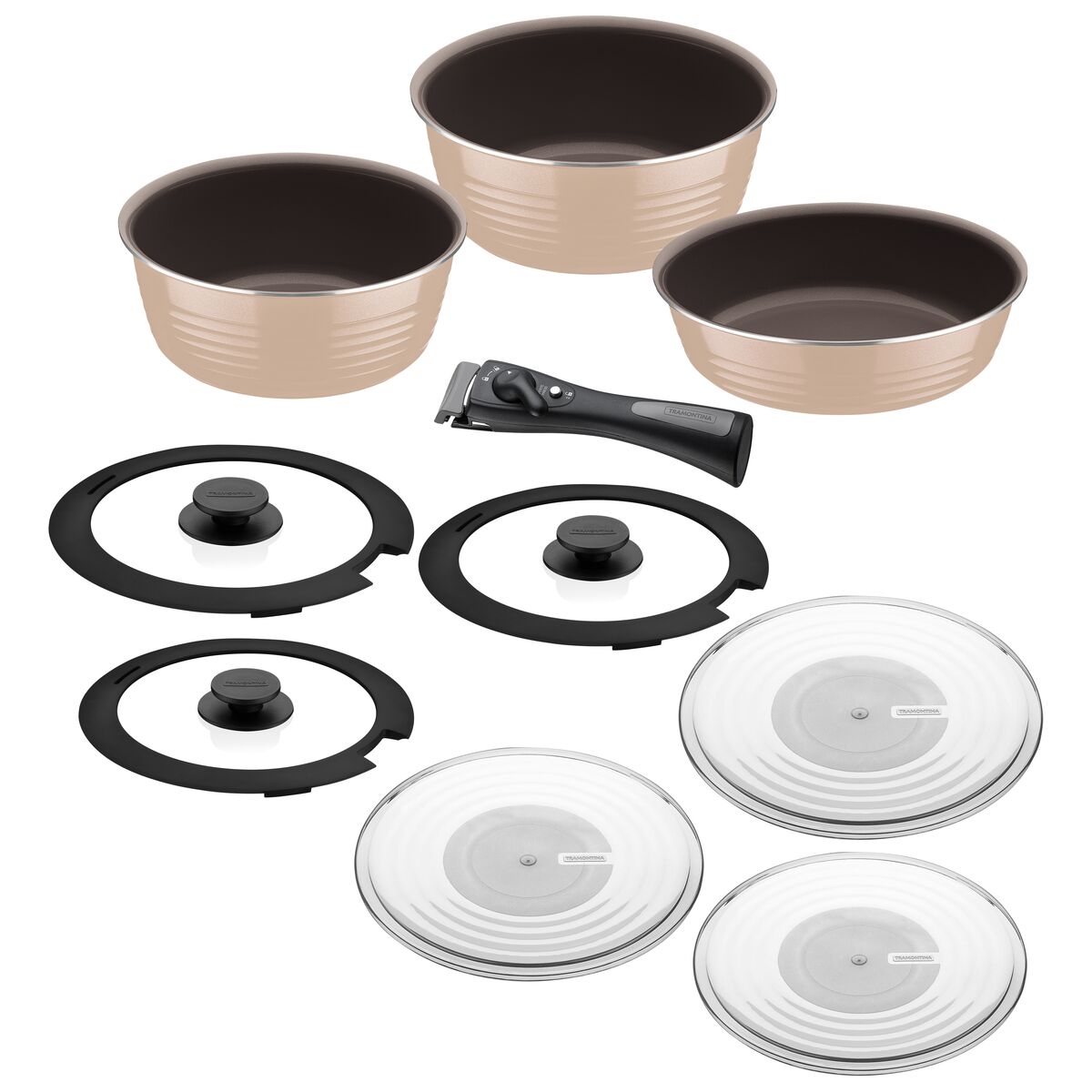 O jogo de panelas multiuso Tramontina Itria em alumínio com revestimento cerâmico marfim e cabo removível 10 peças é a escolha perfeita para quem busca praticidade e sofisticação na cozinha! Com corpo em alumínio, suas peças garantem um cozimento rápido e uniforme, enquanto o revestimento cerâmico, interno e externo, facilita a limpeza e aumenta a durabilidade. O cabo e pegadores em material antitérmico oferecem conforto, sem aquecimento. Extremamente versáteis, as panelas se transformam em potes ao retirar o cabo, sendo ideais para uso em forno e fogão. Compatíveis com fogões a gás, elétricos, vitrocerâmicos e de indução, além de serem laváveis em lava-louças. Um ótimo jogo completo e funcional para transformar sua cozinha!