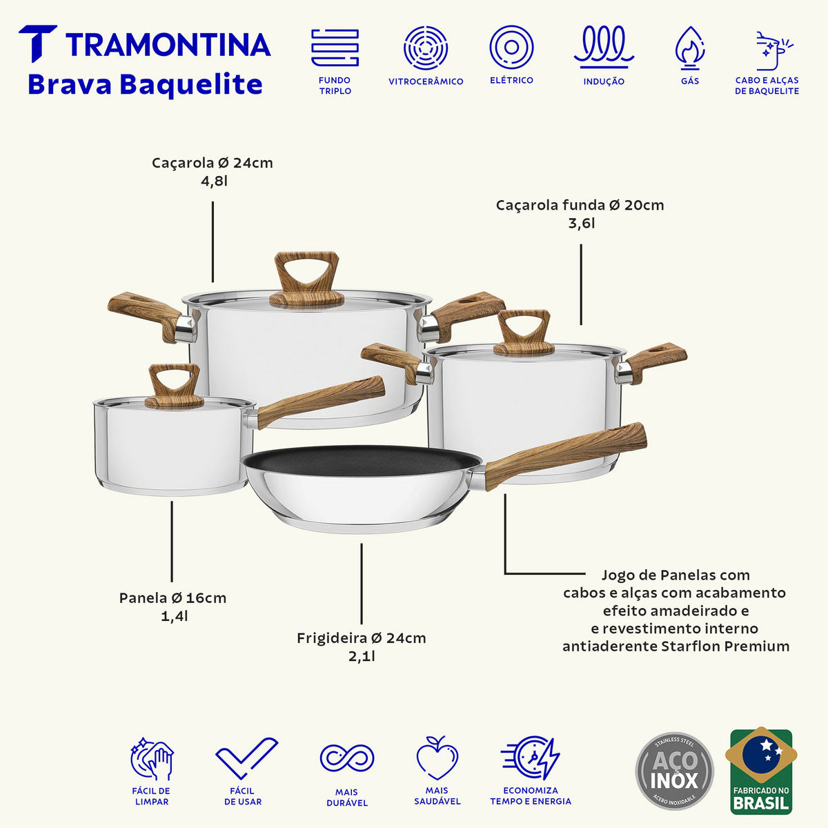 Mais saudável: totalmente feita de aço inox, com revestimento interno de antiaderente Starflon Premium, para tornar a cozinha ainda mais prática, saudável e saborosa. O requinte do aço inox com toda a praticidade e tecnologia do antiaderente Tramontina.