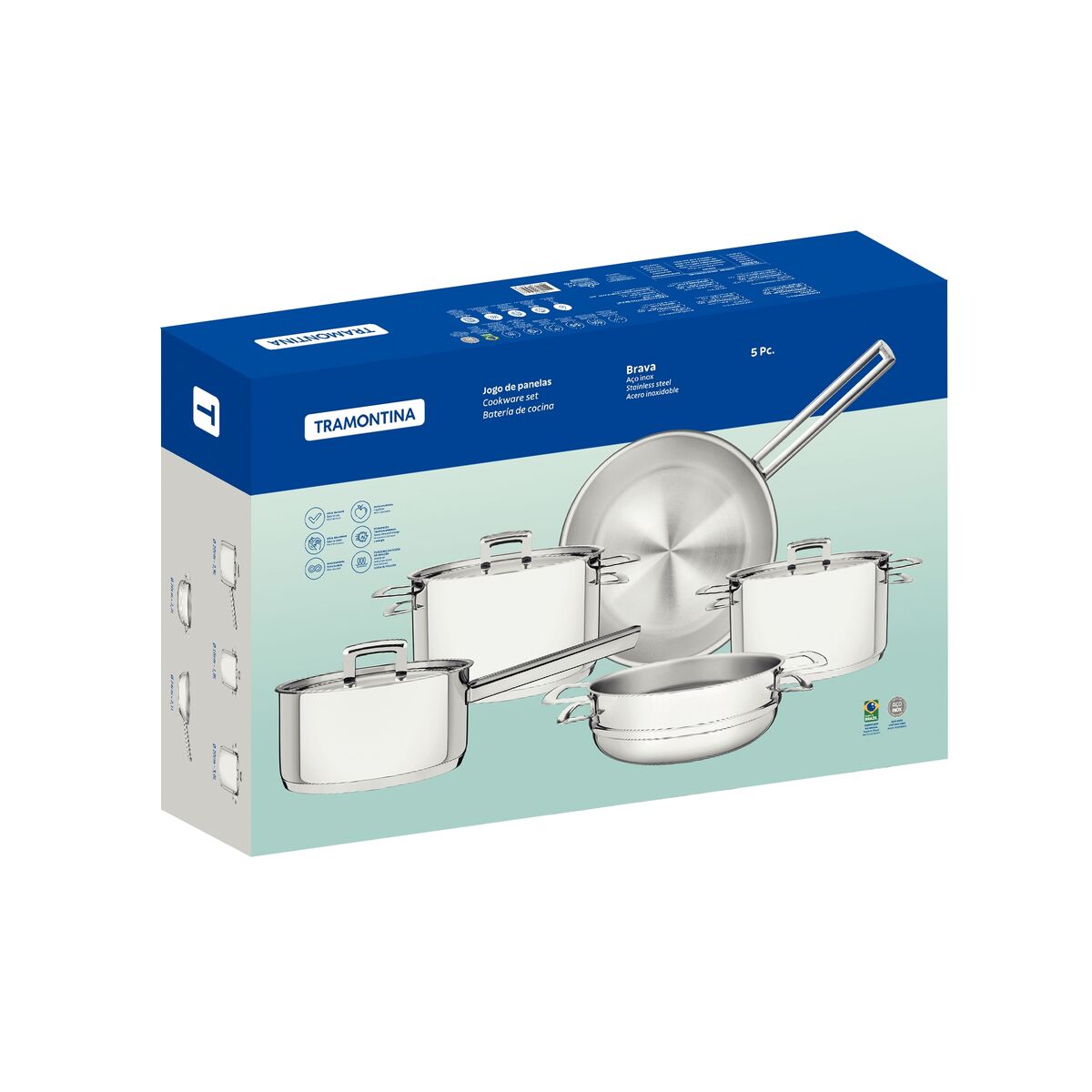 Jogo de Panelas Tramontina Brava em Aço Inox Fundo Triplo com Tampa Plana 5 Peças