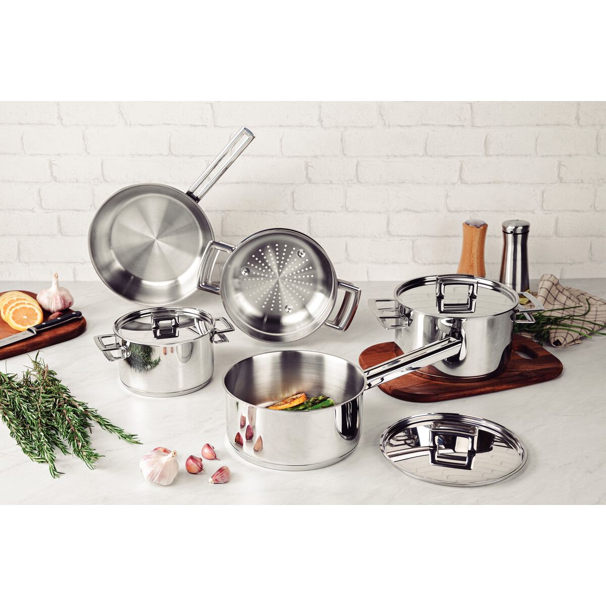 Economiza tempo e energia: o segredo está no fundo triplo (aço inox + alumínio + aço inox), que distribui o calor uniformemente, proporcionando um cozimento mais rápido. Por isso, você pode manter o fogo baixo durante todo o preparo e, assim, poupar energia. Além disso, a panela toda em aço inox pode ir ao forno para gratinar ou finalizar pratos, na temperatura máxima de 260°C.