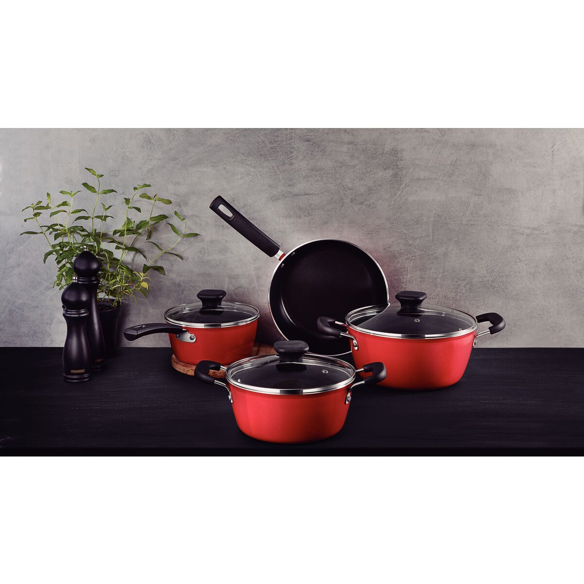 Jogo de Panelas Tramontina Sicília em Alumínio com Revestimento Interno Cerâmico e Externo em Poliéster Vermelho 04 Peças