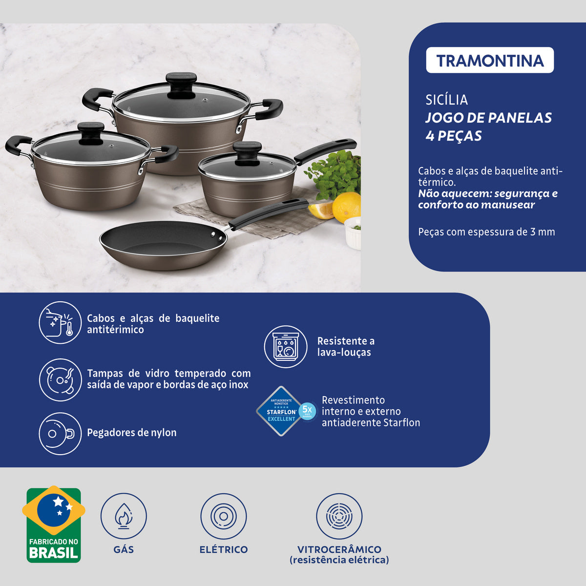 Pode ser utilizada nos fogões: gás, elétrico e vitrocerâmico – resistência elétrica.