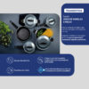 Cabos e alças de baquelite antitérmicos com revestimento soft-touch.